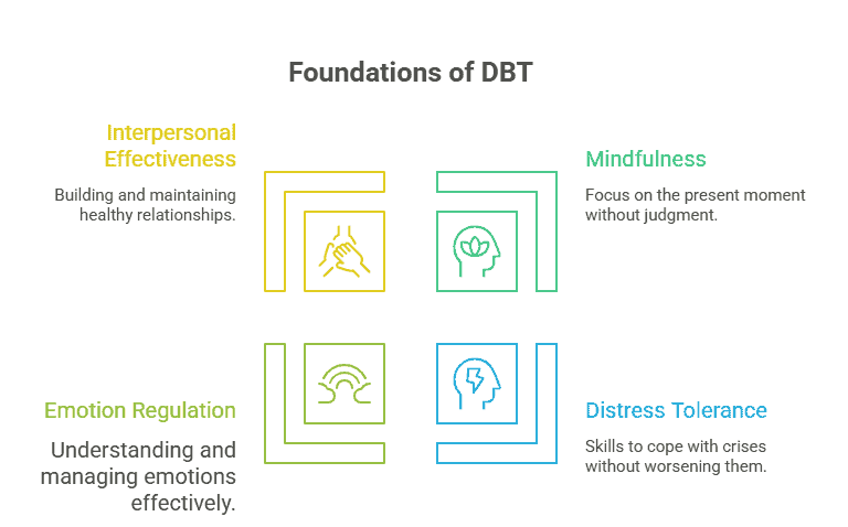 If you have ever wondered what are the four modules of DBT are, then the shorter explanation is as follows: Mindfulness, Distress Tolerance, Emotion Regulation, and Interpersonal Effectiveness. These four