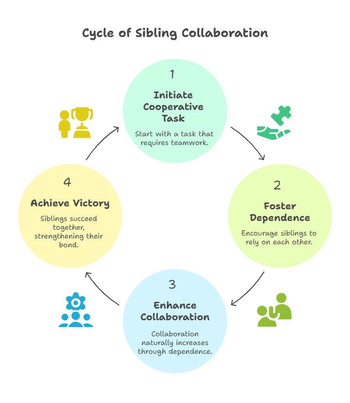Turn a competitive task into a cooperative one. When siblings must rely on each other to win, teamwork naturally strengthens.