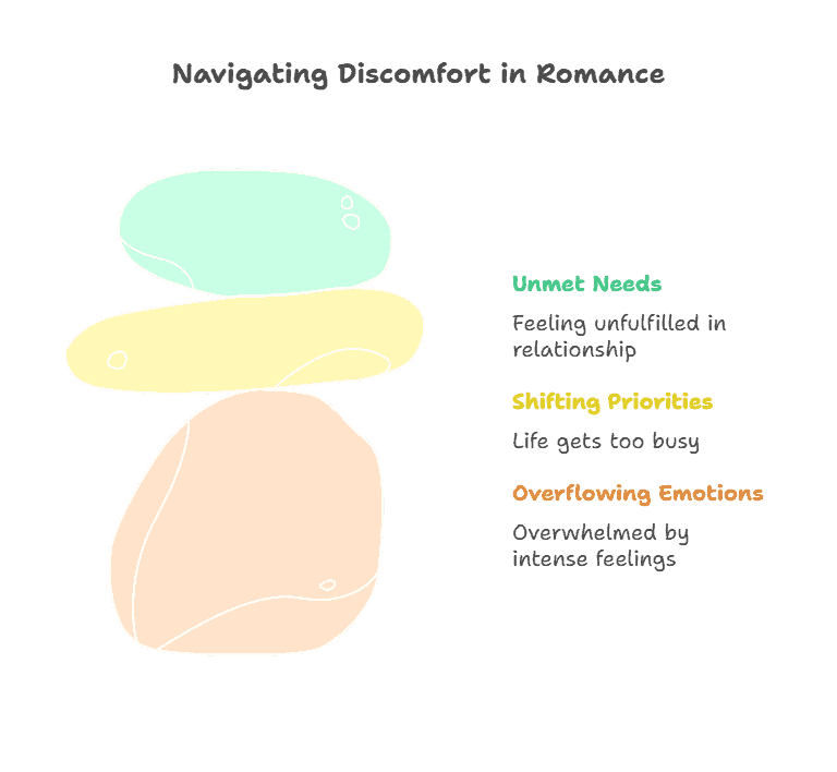 It’s easy to confuse being busy with being emotionally distant. And when connection becomes just another “to-do,” the pressure itself makes romance feel heavy — and therefore, uncomfortable.